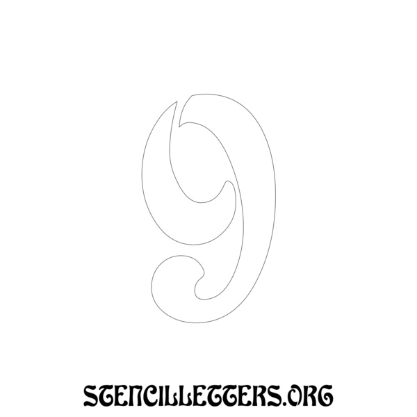 Printable Individual 0-9 Number stencils 196 Art Nouveau - 2 Inch Numbers