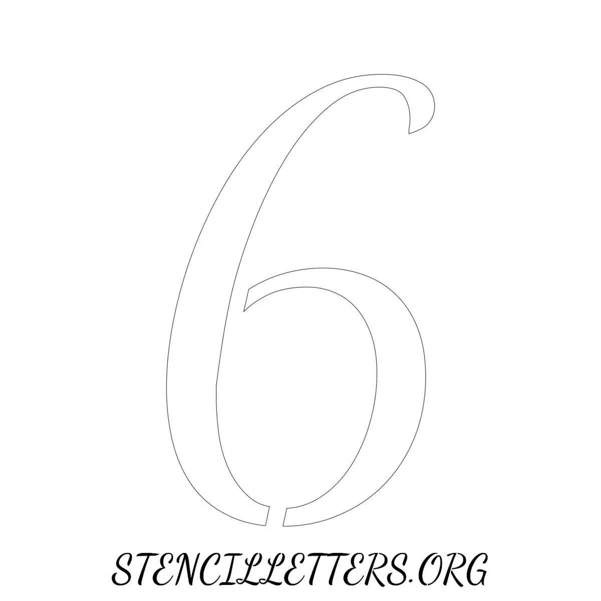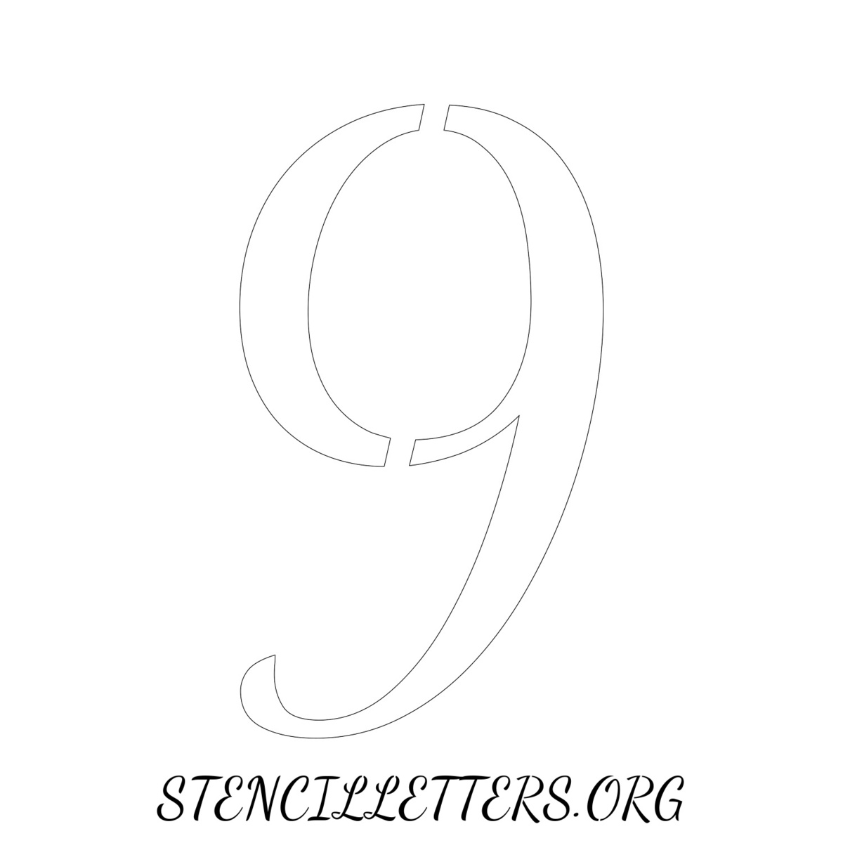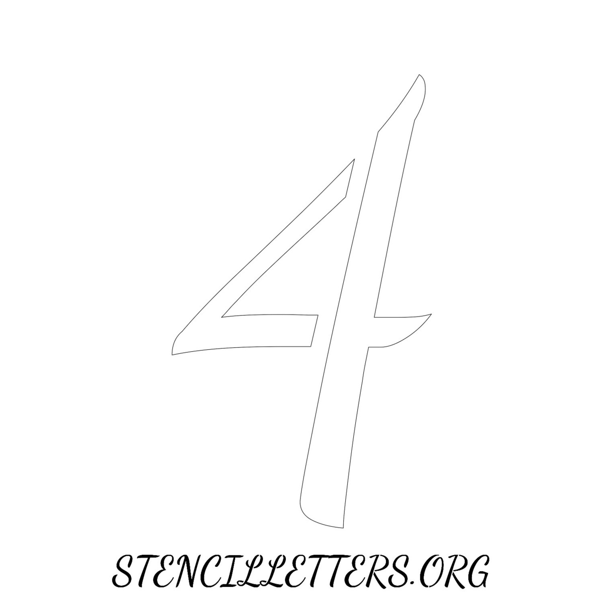 Printable Individual 0-9 Number stencils 133 Cursive - 4 Inch Numbers