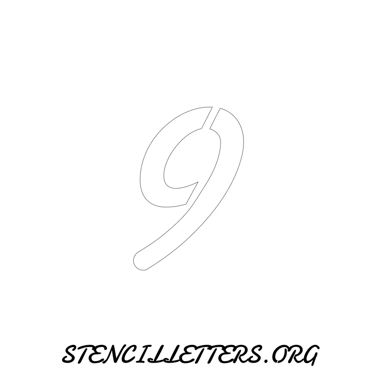Printable Individual 0-9 Number stencils 139 Cursive - 4 Inch Numbers