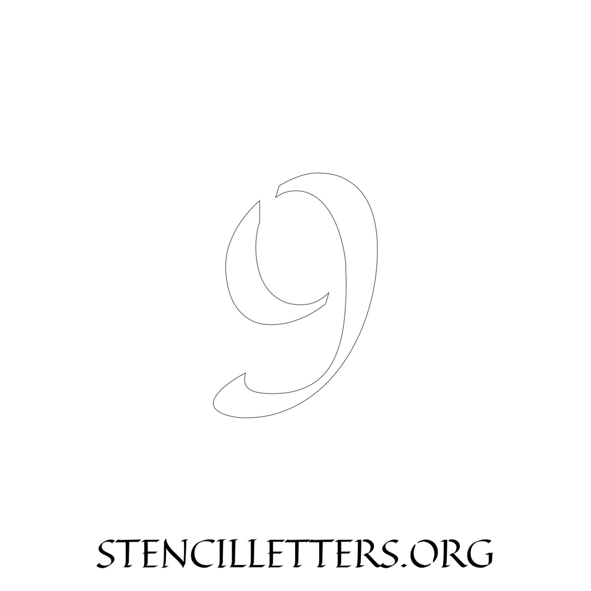 Printable Individual 0-9 Number stencils design 169 Calligraphy in 4 inch numbers high-resolution templates size.
