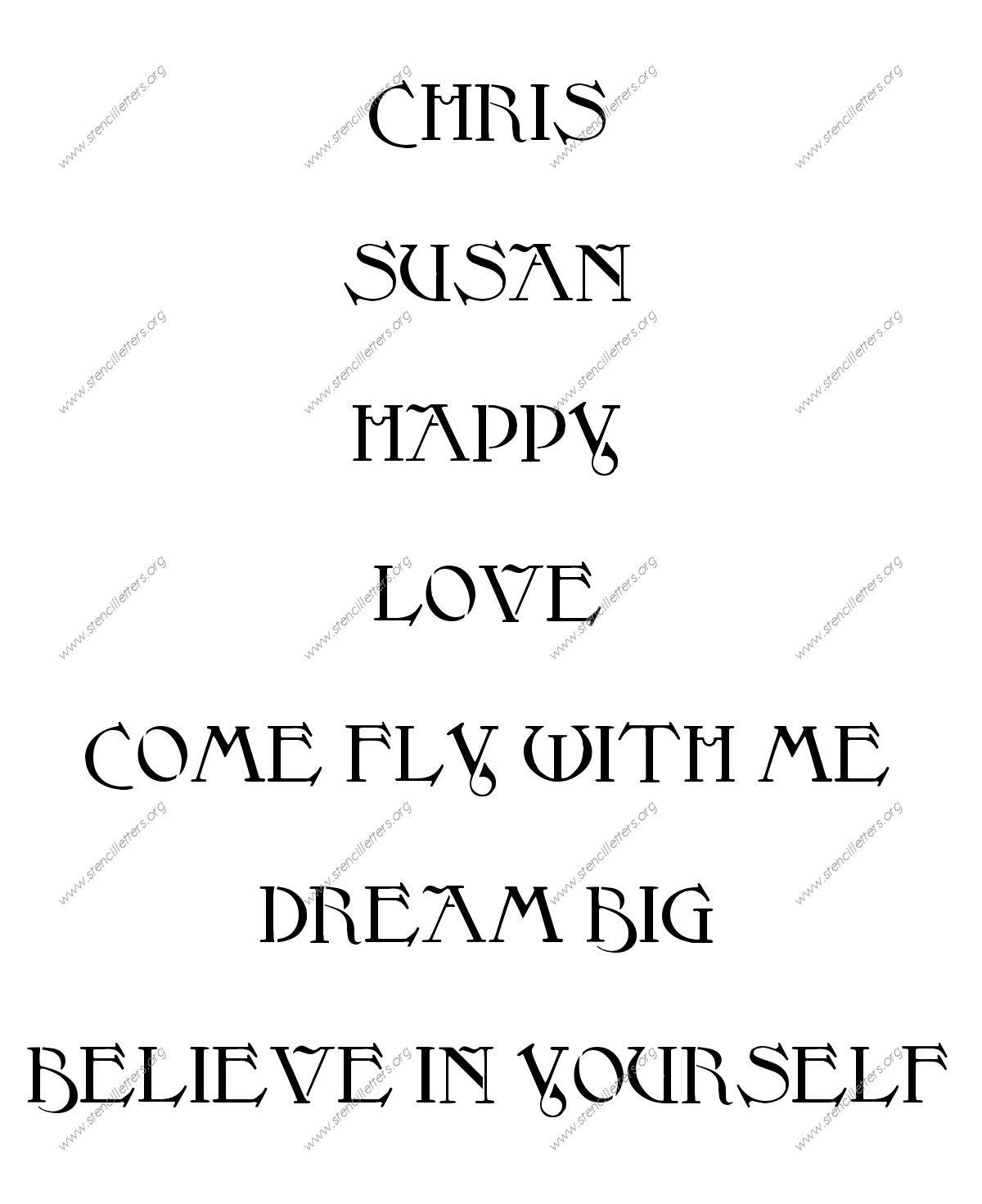Fantasy Art Nouveau alphabet letter stencils for business signs, store boards and displays, and any type of project you are working on.