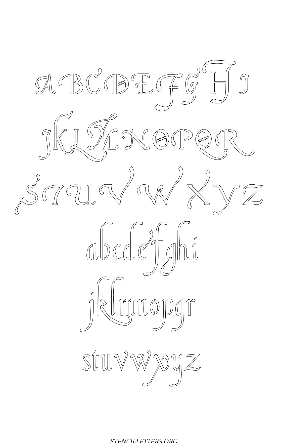 16th Century Cursive free printable letter stencils16th Century Cursive free printable letter stencils in uppercase and lowercase with outline cutout alphabet letters.