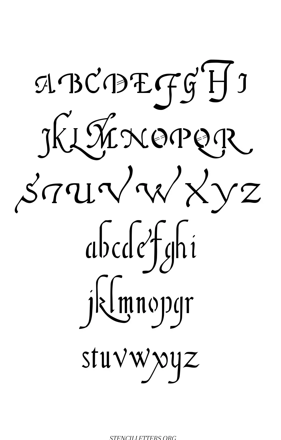 Buy 16th Century Cursive 70 stencil pack in high resolution PDF format which includes 100 PDF files containing standard and outline letters for only $9.