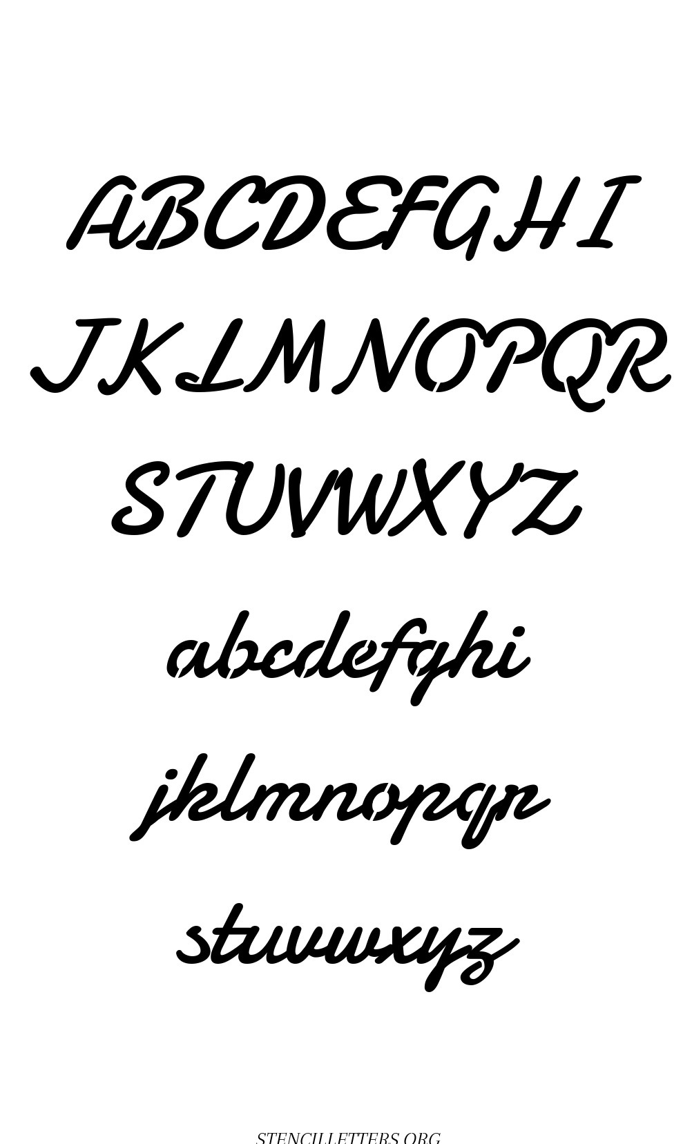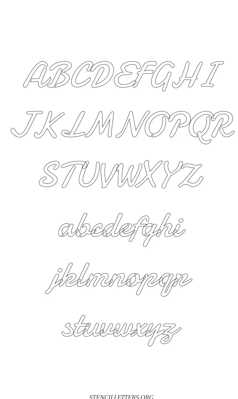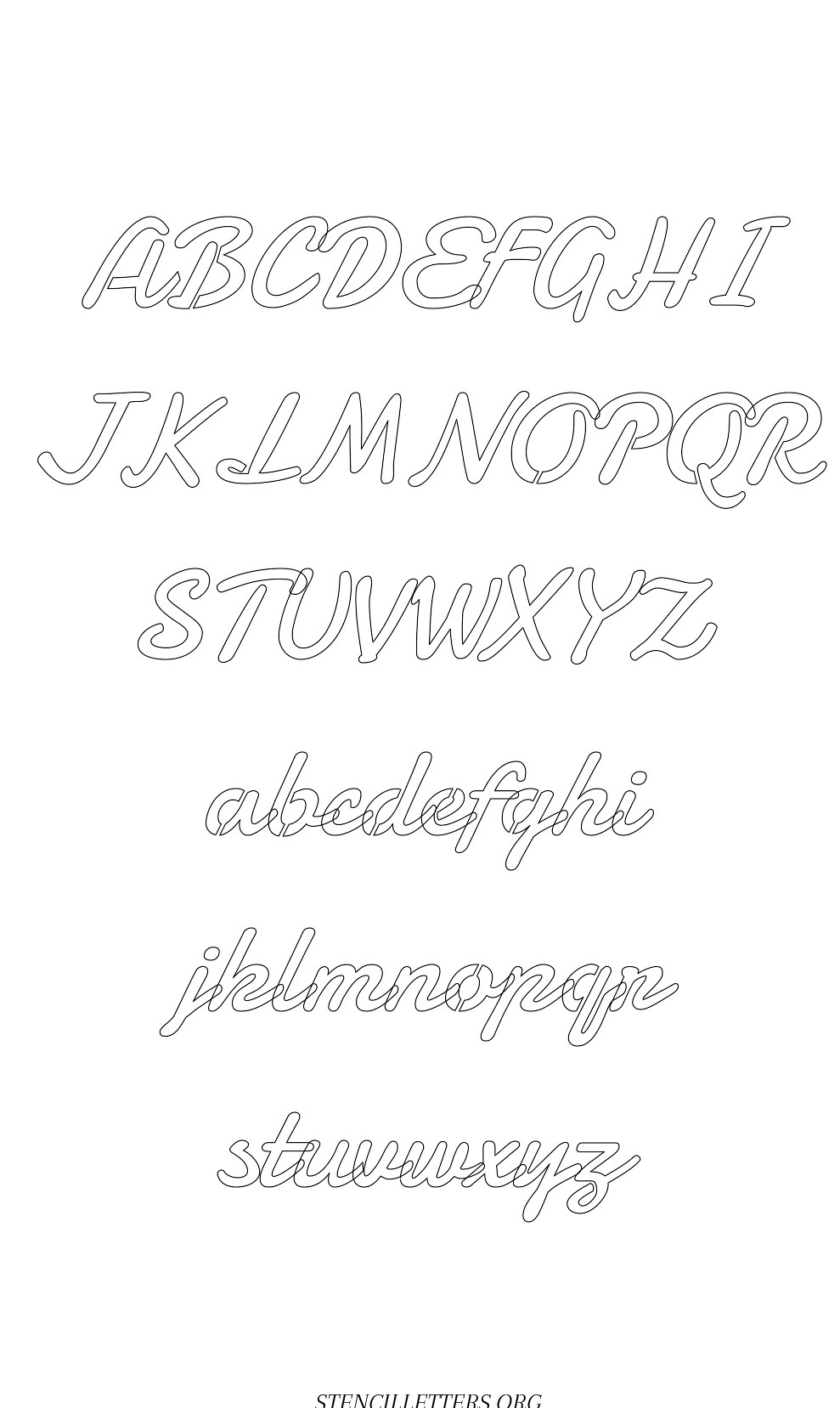 Display Script Cursive Capital A-Z, small a-z free stencil letter templates to print and cut out.