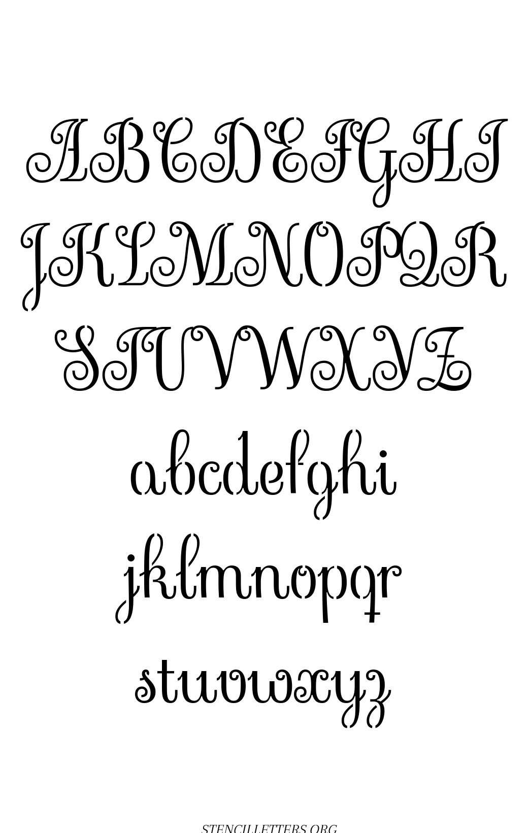 Free printable Exquisite Fine Cursive standard and outline version letter stencils are available in jpg format below.
